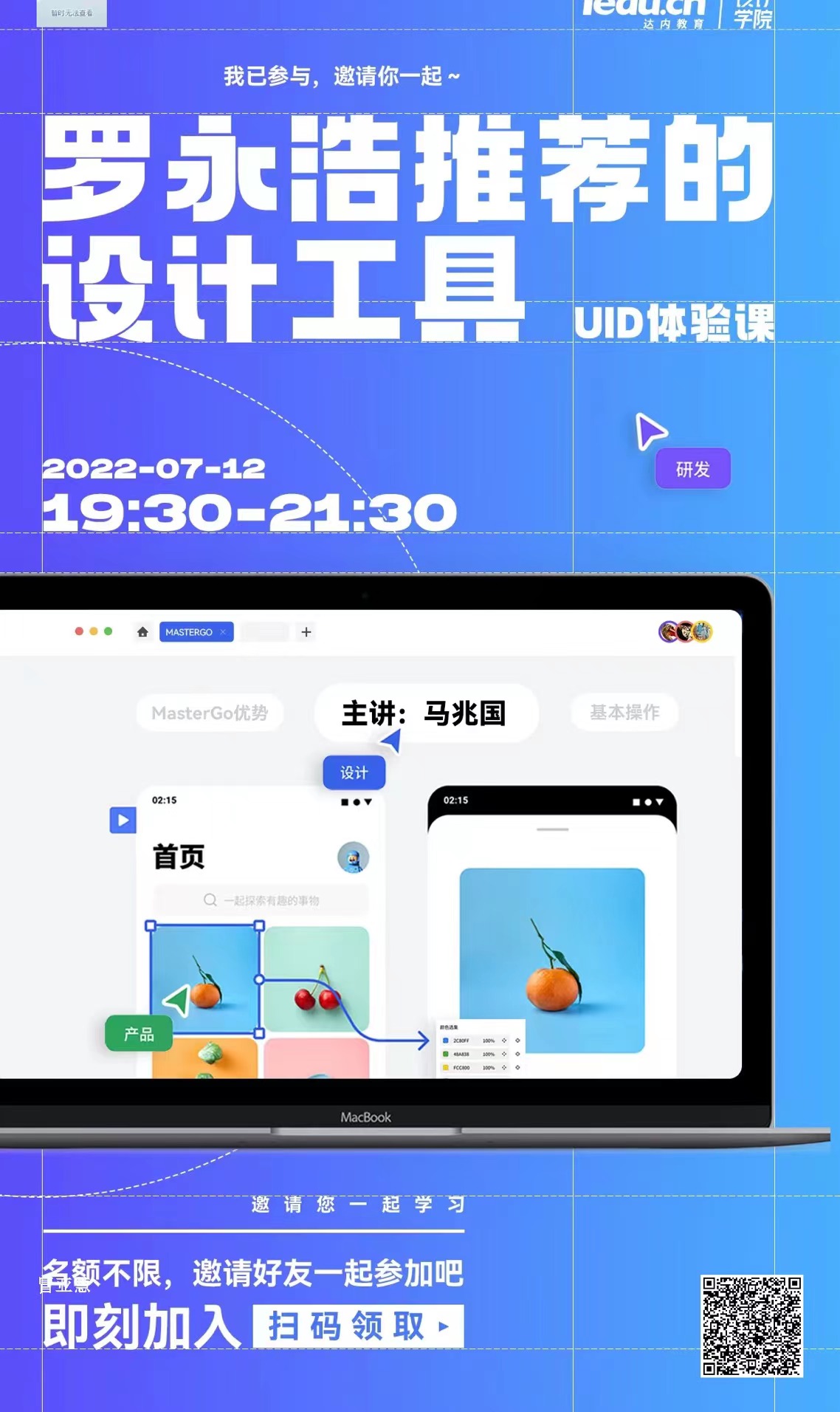 今晚,我们达内开设了罗永浩推荐的设计工具体验课,大家可以扫码进来学习一下,有任何问题都可以来找达内小编解决。